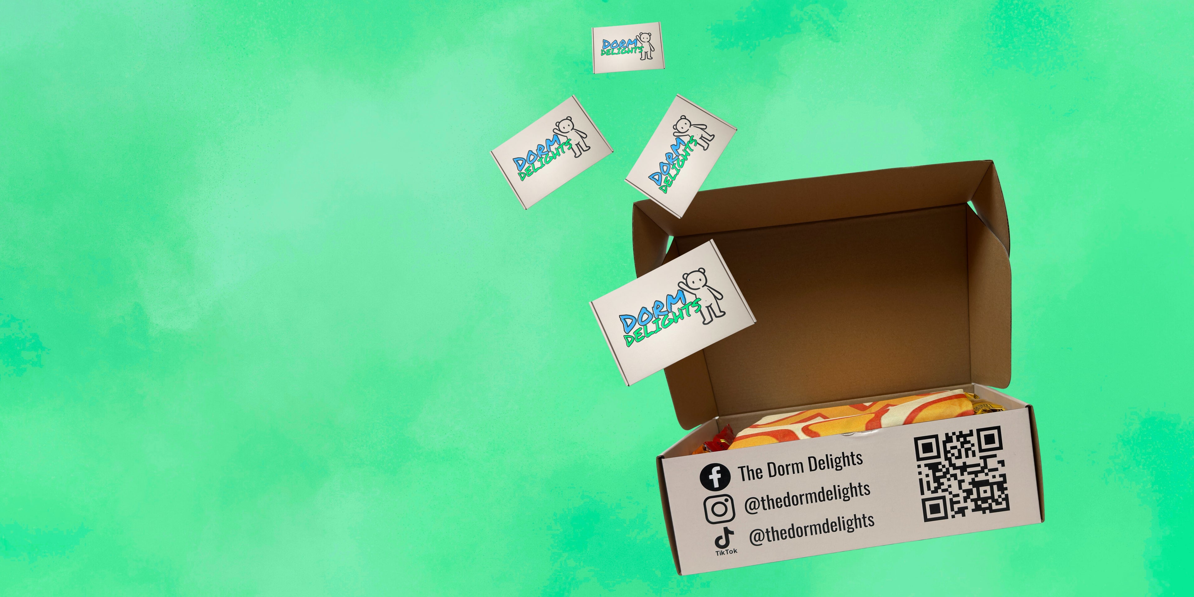 Yes. Every Dorm Delights box includes a 4x6 postcard. During checkout, you can add your own message and upload an image. One side will feature your custom content, and the other will display our seasonal Dorm Delights logo. It's a simple way to add a personal touch to the box.